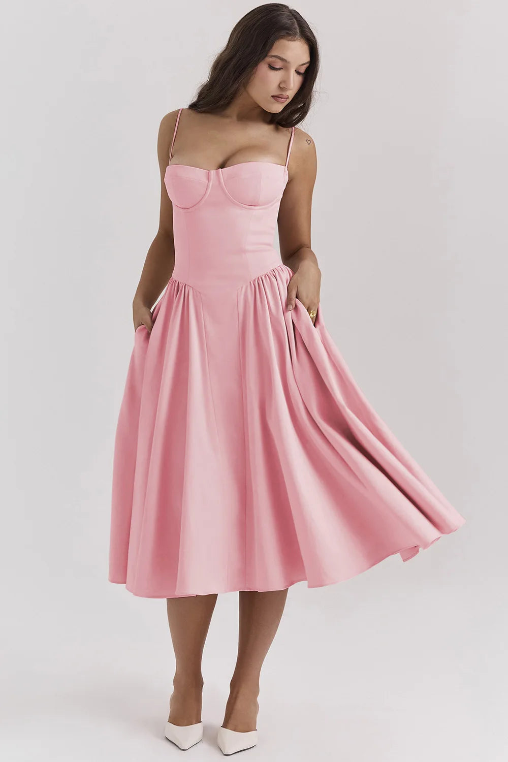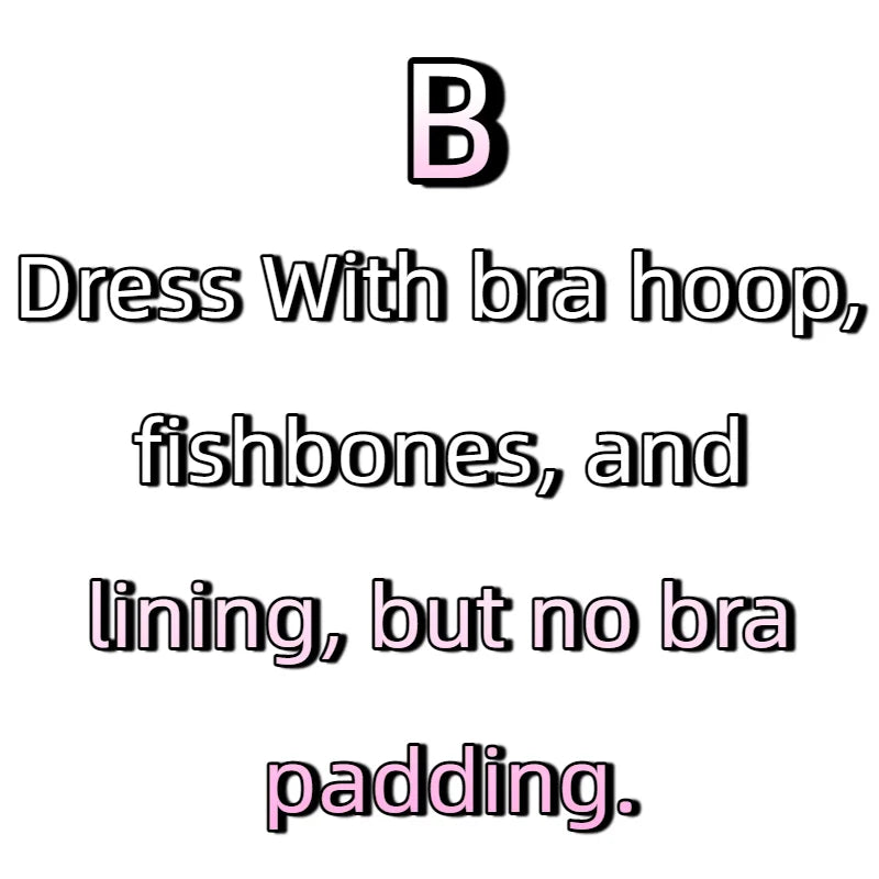 B: Skirt has bra bands, fishbones, lining, no bra pads.